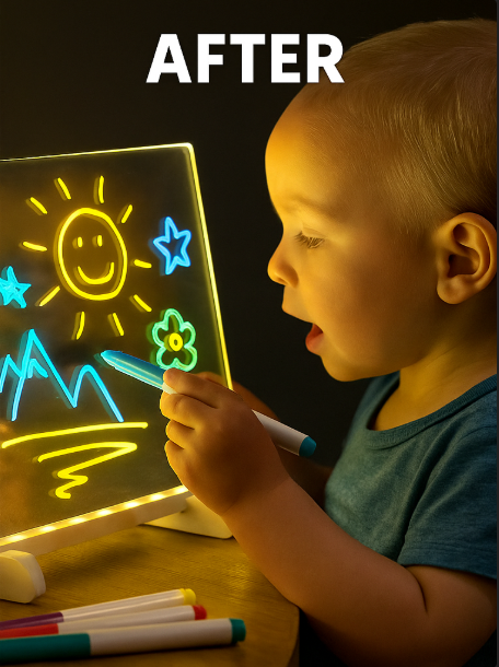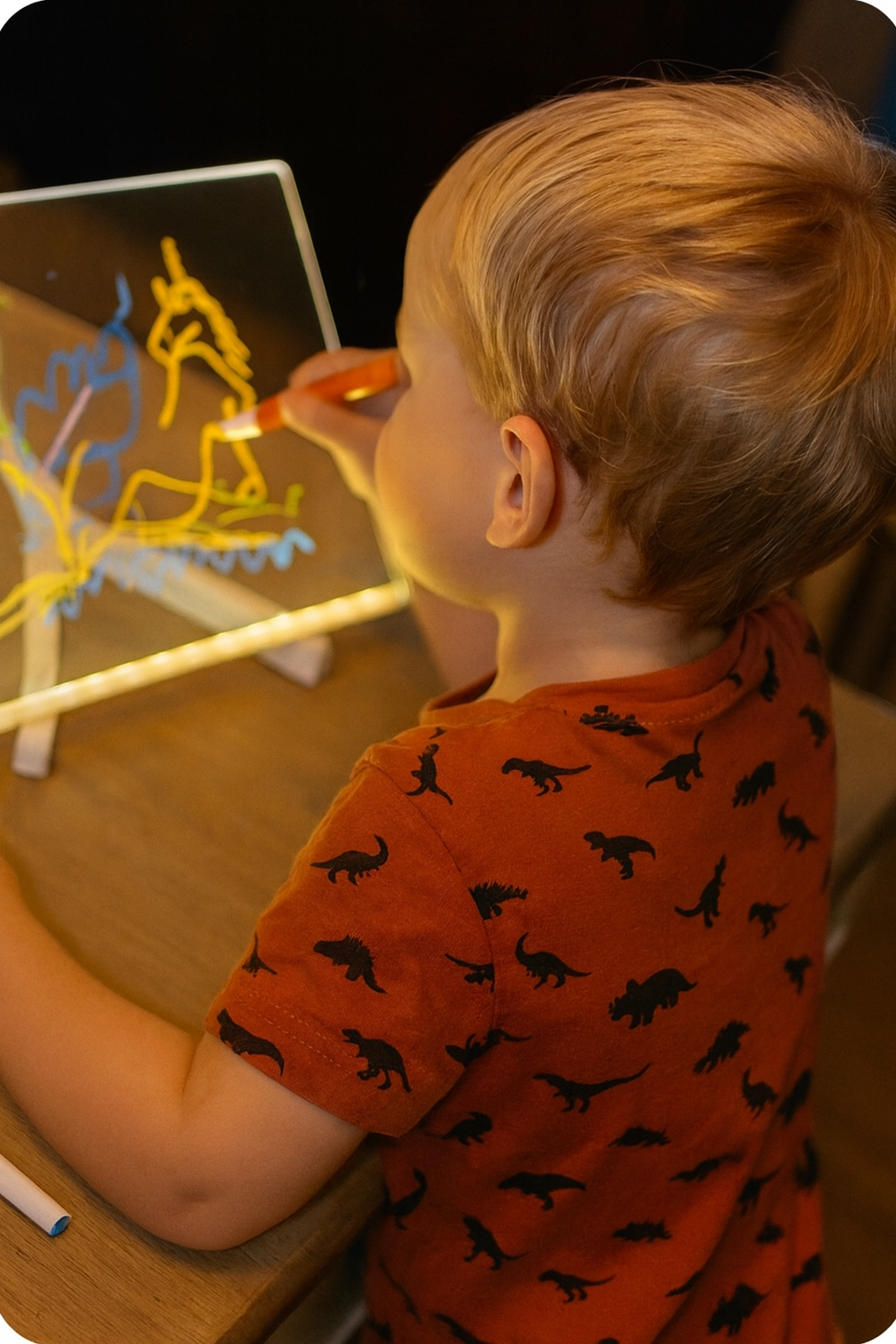 With the Lunecykids™ Luminous Drawing Tablet, they’ll develop imagination, confidence, and focus while having fun,no screens, no noise, and no limits to their creativity.
